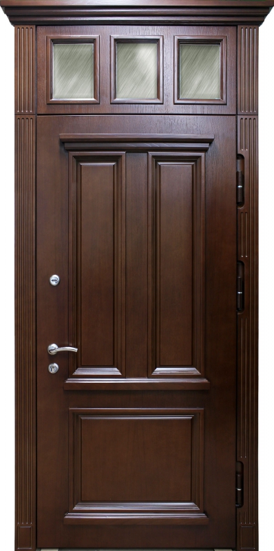 Дверь с сувальдным замком и фрамугой №34 идеально сочетает в себе стиль и надежность. Панель из натурального дерева, использованная как для внешней, так и для внутренней отделки, придает двери благородный и элегантный вид, делая её отличным выбором для помещений с классическим или современным интерьером. Каркас двери выполнен из профильной трубы 50х25 мм и усилен ребрами жесткости, что гарантирует прочность конструкции. Замки от производителей "Просам" и "Мосрентген" с тремя ригелями обеспечивают высокий уровень безопасности. Дверь оснащена уплотнителями с двумя контурами, что гарантирует отличную герметичность, а возможность замены замков и добавления кованых элементов делает её адаптируемой под любые требования. Кроме того, дверь можно дополнить зеркалом, стеклопакетом или видеодомофоном для еще большего комфорта. Входная дверь с сувальдным замком и фрамугой №34 от производителя: быстрое изготовление и монтаж в Красногорске, индивидуальные размеры, широкий выбор материалов и фурнитуры, официальная гарантия до 10 лет.