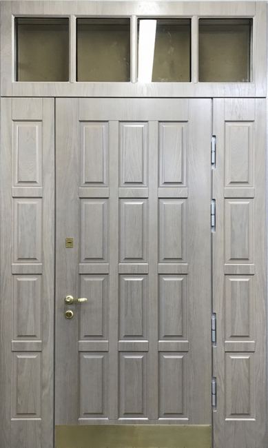 Входная дверь с остекленной фрамугой №1 привлекает внимание благодаря стильному и современному дизайну. Ее внешняя и внутренняя отделка из МДФ выглядит элегантно и долговечно, а также устойчива к механическим повреждениям, таким как царапины и вмятины. Каркас из профильной трубы и металл толщиной 2 мм гарантируют прочность и надежность. Наличие фрамуги позволяет создать эффектное освещение и визуально расширяет пространство, при этом сохранение теплоизоляции обеспечено двумя контурами резинового уплотнителя. Блокираторы и качественные замки, такие как Просам и Мосрентген, надежно защищают от взлома. Возможность дополнить дверь стеклопакетом, зеркалом или коваными элементами делает эту модель еще более универсальной для различных интерьеров. Входная дверь с остекленной фрамугой №1 от производителя: быстрое изготовление и монтаж в Красногорске, индивидуальные размеры, широкий выбор материалов и фурнитуры, официальная гарантия до 10 лет.