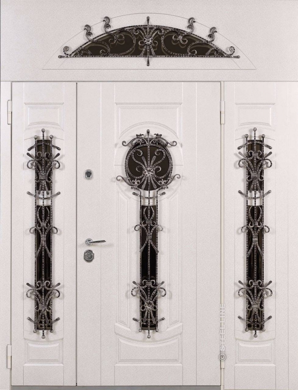 Входная дверь с кованой ручкой и фрамугой №6 представляет собой элегантное и надежное решение для тех, кто ценит не только безопасность, но и стиль. Эта модель идеально подойдет для оформления парадных входов в дома и офисы. Внешняя отделка из плиты МДФ придает двери современный и чистый вид, который сохраняется долго благодаря стойкости к внешним воздействиям. Благодаря профильной трубе с толщиной металла 2 мм и ребрам жесткости, конструкция двери гарантирует прочность и долговечность. Дополнительный элемент — кованая ручка, которая добавляет изысканности и подчеркивает высокий класс изделия. Стандартная комплектация не включает шумо- и теплоизоляцию, однако она может быть установлена по желанию. Резиновый уплотнитель с двумя контурами обеспечит хорошую герметичность, защищая от ветра и пыли. Подходит для установки как в частных домах, так и в офисах, привлекая внимание своим необычным и стильным дизайном. Входная дверь с кованой ручкой и фрамугой №6 от производителя: быстрое изготовление и монтаж в Красногорске, индивидуальные размеры, широкий выбор материалов и фурнитуры, официальная гарантия до 10 лет.