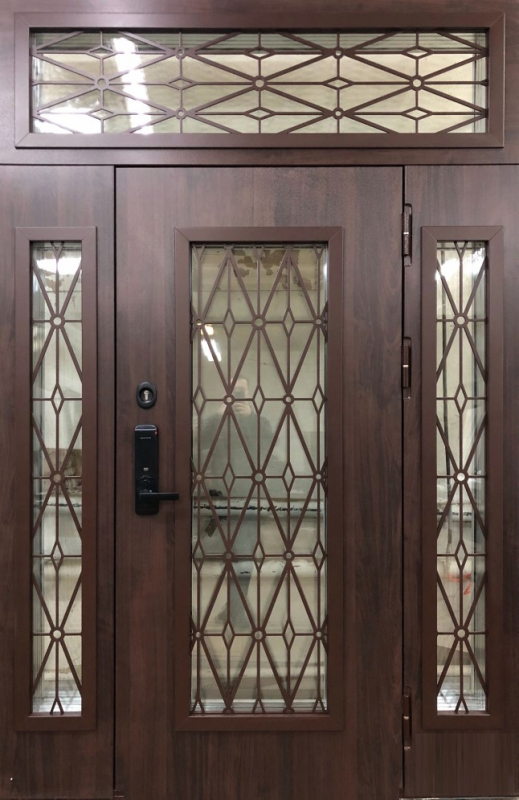 Входная дверь с декоративным рисунком и фрамугой №8 сочетает в себе элегантность и надёжность. Внешняя и внутренняя отделка из панелей МДФ с ПВХ покрытием обеспечивают долговечность и лёгкость в уходе, сохраняя стойкость к внешним воздействиям и механическим повреждениям. Каркас из профильной трубы 50x25 мм и лист металла толщиной 2 мм придают двери прочность, а ребра жесткости из труб 40x25 мм усиливают её устойчивость. Несмотря на отсутствие терморазрыва, конструкция двери с двумя контурами уплотнителей гарантирует отличную изоляцию от холода и шума. Такая дверь идеально подойдёт для установки в местах, где важен стильный внешний вид и безопасность. Входная дверь с декоративным рисунком и фрамугой №8 от производителя: быстрое изготовление и монтаж в Красногорске, индивидуальные размеры, широкий выбор материалов и фурнитуры, официальная гарантия до 10 лет.