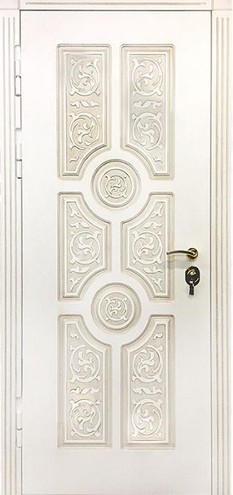 Дверь уличная с терморазрывом №49 — это надежное решение для частных домов и коттеджей, которое обеспечит комфорт и защиту от внешних факторов. С терморазрывом в коробке и полотне, эта дверь исключает проникновение холода, сохраняя тепло в доме и предотвращая появление конденсата. Внешняя и внутренняя отделка выполнена с использованием накладки МДФ, что придает двери привлекательный вид и долговечность, стойкость к механическим повреждениям и атмосферным воздействиям. Ковка, как элемент декора, добавляет изысканности и подчеркивает индивидуальность. Металлическая конструкция с толщиной полотна 1,5 мм и каркасом из профильных труб гарантирует прочность и устойчивость. Уплотнение с тремя контурами магнитного герметика и высокая шумо- и теплоизоляция на основе пенопласта делают дверь идеальной для использования в уличных условиях. Возможность замены замков и добавления стеклопакетов или кованых элементов позволяет индивидуализировать дверное решение под любые потребности. Дверь уличная с терморазрывом №49 от производителя: быстрое изготовление и монтаж в Красногорске, индивидуальные размеры, широкий выбор материалов и фурнитуры, официальная гарантия до 10 лет.
