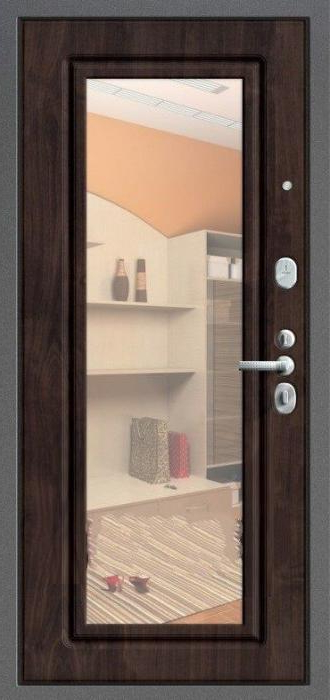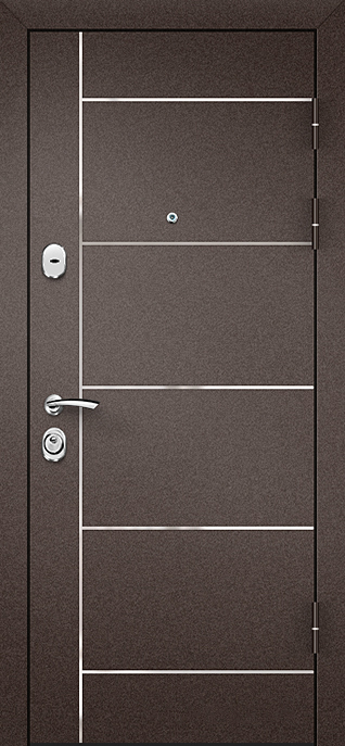 Каркас из профильной трубы и стальной лист толщиной 2 мм обеспечивают прочность конструкции и устойчивость к взлому, а два контура уплотнителей защищают помещение от сквозняков и уличного шума. Входная дверь в квартиру с зеркалом №10 выделяется сочетанием практичного молоткового напыления снаружи и аккуратной плиты МДФ внутри. Такое покрытие не боится механических повреждений и перепадов температуры, долго сохраняя первоначальный вид. Зеркало на внутренней стороне делает прихожую светлее и визуально просторнее, заменяя полноценное настенное. Дополнительные блокираторы и система ребер жёсткости усиливают надежность. Возможность изготовления в любых размерах позволяет адаптировать модель под особенности квартиры, офиса или частного дома, сохранив баланс между эстетикой и безопасностью. Входная дверь в квартиру с зеркалом №10 от производителя: быстрое изготовление и монтаж в Красногорске, индивидуальные размеры, широкий выбор материалов и фурнитуры, официальная гарантия до 10 лет.