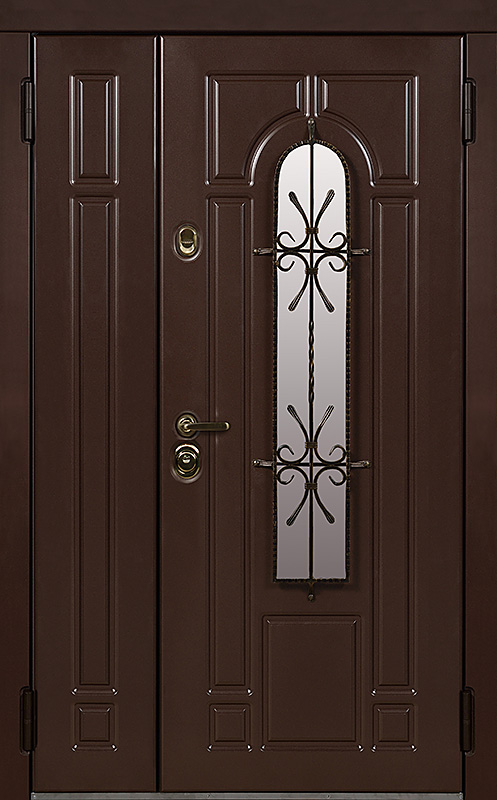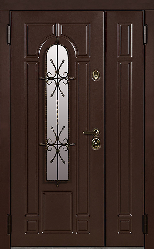 Эта металлическая двухстворчатая дверь с арочным стеклопакетом №15 представляет собой идеальный баланс между эстетикой и прочностью. Арочное стекло добавляет в её дизайн утончённость, а ковка в декоре придаёт изысканный, но в то же время крепкий и надёжный вид. Плита МДФ, используемая как для внешней, так и для внутренней отделки, не только сохраняет прекрасный внешний вид, но и устойчива к механическим повреждениям. Металлическая двухстворчатая дверь с арочным стеклопакетом №15 от производителя: быстрое изготовление и монтаж в Красногорске, индивидуальные размеры, широкий выбор материалов и фурнитуры, официальная гарантия до 10 лет.
