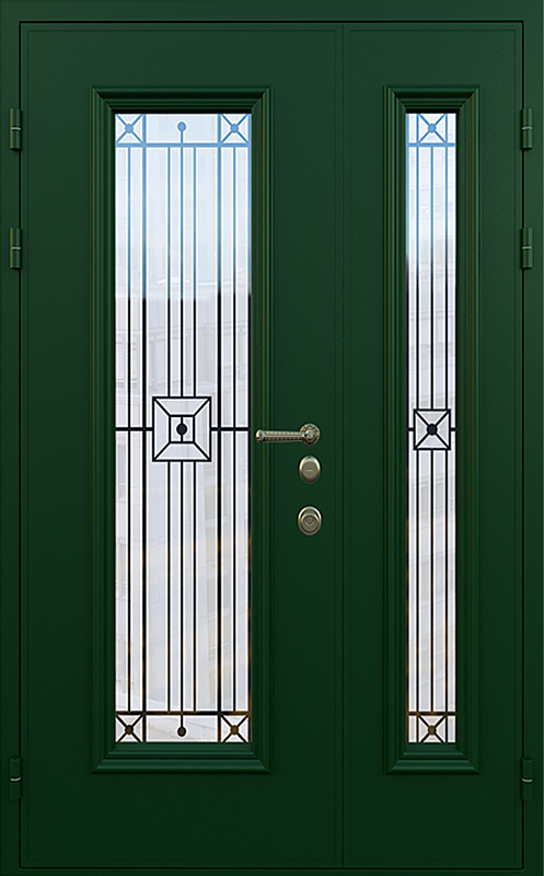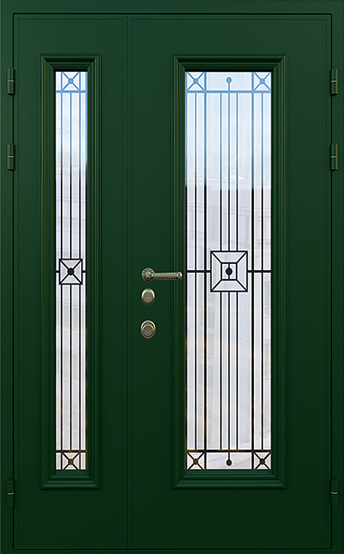 Зеленая полуторная дверь со стеклопакетом для частного дома №18 — это идеальный выбор для тех, кто хочет добавить в свой дом надежность и стиль. Элементы декора, такие как багет и ковка, придают двери элегантный вид, который идеально гармонирует с фасадом загородного дома. Панели МДФ с ПВХ-покрытием, использованные для внешней и внутренней отделки, обеспечивают высокую стойкость к механическим повреждениям и внешним воздействиям, сохраняя прекрасный внешний вид на долгое время. Зеленая полуторная дверь со стеклопакетом для частного дома №18 от производителя: быстрое изготовление и монтаж в Красногорске, индивидуальные размеры, широкий выбор материалов и фурнитуры, официальная гарантия до 10 лет.