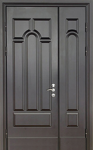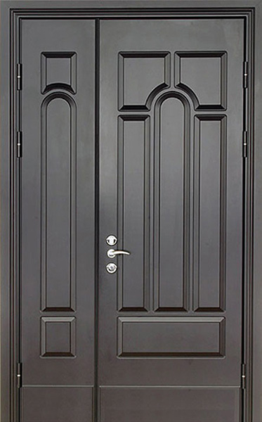 Металлическая двухстворчатая дверь для дома цвета графит №27 – это стильное и надежное решение для вашего жилья. Внешняя и внутренняя отделка выполнены из МДФ, что придает двери изысканный вид и увеличивает её стойкость к механическим повреждениям. Цвет графит придаёт двери современный и элегантный оттенок, который легко впишется в интерьер как частных домов, так и современных офисов. Металлическая двухстворчатая дверь для дома цвета графит №27 от производителя: быстрое изготовление и монтаж в Красногорске, индивидуальные размеры, широкий выбор материалов и фурнитуры, официальная гарантия до 10 лет.