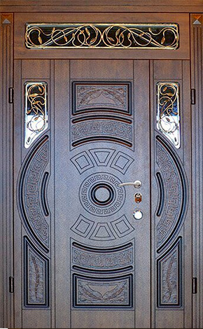 Дверь входная металлическая с стеклом и ковкой для дома №34