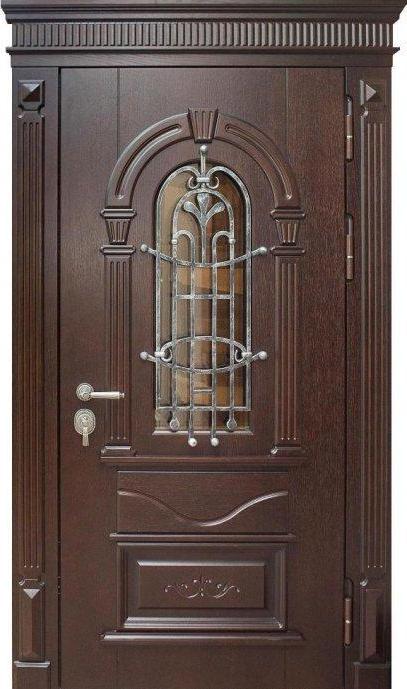 Дверь входная с ковкой и стеклопакетом №28