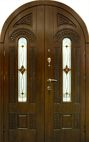 Арочный проём всегда смотрится благородно и подчёркивает архитектурный стиль дома, а витраж вносит в фасад лёгкость и игру света. Арочная входная дверь с витражом в частный дом №69 сочетает прочную металлическую основу с отделкой панелями из натурального дерева, которые сохраняют свою красоту долгие годы и стойко переносят ежедневную эксплуатацию. В конструкции предусмотрен лист стали толщиной 2 мм и система ребер жёсткости, что обеспечивает высокий уровень безопасности и долговечности. Терморазрыв в коробке и полотне защищает от промерзания и появления конденсата, сохраняя тепло в доме даже в сильные морозы. Итальянские замки Cisa цилиндрового и сувальдного типа дополняют защиту, гарантируя надёжность при ежедневном использовании. Возможность индивидуальной отделки, добавления зеркала, кованых элементов или стеклопакета делает эту модель не только функциональной, но и выразительной деталью экстерьера. Арочная входная дверь с витражом в частный дом №69 от производителя: быстрое изготовление и монтаж в Красногорске, индивидуальные размеры, широкий выбор материалов и фурнитуры, официальная гарантия до 10 лет.