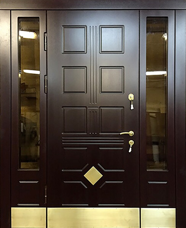 Натуральное дерево в отделке придаёт конструкции основательность и благородный внешний вид, а металлический каркас с листом стали толщиной 2 мм и системой ребер жёсткости обеспечивает надёжную защиту и долговечность. Входная дверь с остеклением №70 особенно востребована в частных домах и коттеджах, где важна не только безопасность, но и эстетика. Стеклянные элементы делают полотно визуально легче и наполняют прихожую естественным светом, при этом оставаясь частью прочной конструкции. Для комфорта предусмотрены два контура уплотнения, а терморазрыв в коробке и полотне защищает от промерзания и сохраняет тепло даже в сильные морозы. Итальянские замки Cisa цилиндрового и сувальдного типа дополняют высокий уровень безопасности. Возможность добавить кованые элементы, зеркало или стеклопакет позволяет адаптировать модель под архитектуру дома, подчёркивая индивидуальность и вкус владельцев. Входная дверь с остеклением №70 от производителя: быстрое изготовление и монтаж в Красногорске, индивидуальные размеры, широкий выбор материалов и фурнитуры, официальная гарантия до 10 лет.