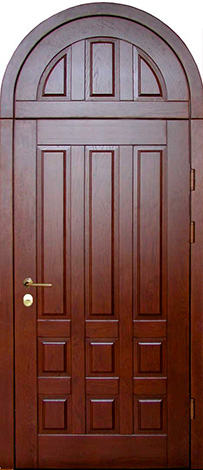 Высокая арочная входная дверь массив №26 идеально подчеркнет величие вашего частного дома или коттеджа. Внешняя и внутренняя отделка из массива дерева придают двери естественную красоту и изысканность. Каркас и полотно выполнены из профильной трубы 50х25 мм, с дополнительной жесткостью благодаря ребрам из профильных труб 40х25 мм и металлическому листу толщиной 2 мм. Элементы конструктивной прочности обеспечат долговечность, а два контура резинового уплотнителя гарантируют надежную герметичность. Несмотря на отсутствие терморазрыва, дверь остается надежной и безопасной, дополнительно оснащенной блокираторами для защиты. Эта дверь станет настоящим акцентом в вашем доме, сочетая эстетическую привлекательность и отличную защиту. Высокая арочная входная дверь массив №26 от производителя: быстрое изготовление и монтаж в Красногорске, индивидуальные размеры, широкий выбор материалов и фурнитуры, официальная гарантия до 10 лет.