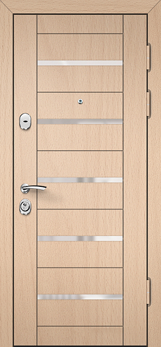 Эта бронированная дверь в современном дизайне №28 станет отличным решением для частного дома, квартиры или офиса, предлагая надежную защиту и стильный внешний вид. Ее конструкция включает каркас из профильной трубы 50х25 мм и металлическое полотно толщиной 2 мм, что обеспечивает прочность и долговечность. Внешняя и внутренняя отделка выполнены из плиты МДФ, придающей двери современный вид и стойкость к механическим повреждениям. Хотя терморазрыв отсутствует, конструкция с терморазрывом коробки и полотна помогает снижать теплопотери. Дополнительную безопасность обеспечивают два замка — сувальдный и цилиндровый, оба с тремя ригелями. В дверь можно добавить зеркало, стеклопакет или кованые элементы, а также установить видеодомофон, что делает эту модель максимально универсальной и индивидуальной. Бронированная дверь в современном дизайне №28 от производителя: быстрое изготовление и монтаж в Красногорске, индивидуальные размеры, широкий выбор материалов и фурнитуры, официальная гарантия до 10 лет.